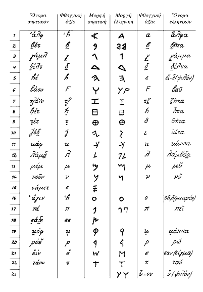 Πηγή: Α. Σιγάλας, Ιστορία της ελληνικής γραφής, Θεσσαλονίκη: ΑΠΘ, 1934