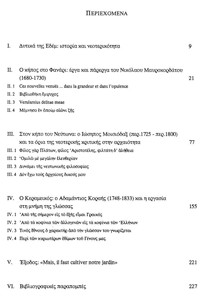 Εκδοχές νεοτερικότητας στην κοινωνία του γένους: Νικόλαος Μαυροκορδάτος - Ιώσηπος Μοισιόδακας - Αδαμάντιος Κοραής.