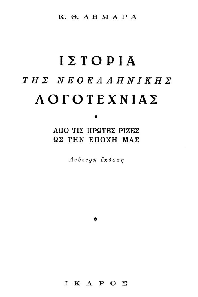 Ιστορία της Νεοελληνικής Λογοτεχνίας. Από τις πρώτες ρίζες ως τις μέρες μας, 1949