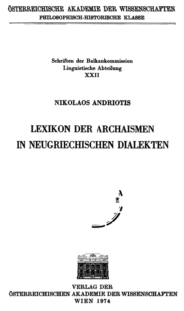 Καραποτόσογλου Κ. 1991-92, «Ετυμολογικές παρατηρήσεις στο λεξικό των αρχαϊσμών του Ν. Π. Ανδριώτη», Ελληνικά 42, τεύχ. 1, 135-156.