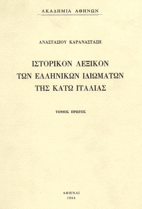 Χ. Πετροπούλου, “Η συμβολή του Αναστάσιου Καραναστάση στη μελέτη των ελληνικών ιδιωμάτων της Κάτω Ιταλίας”, Νεοελληνική Διαλεκτολογία 3, 2000, 261-270.