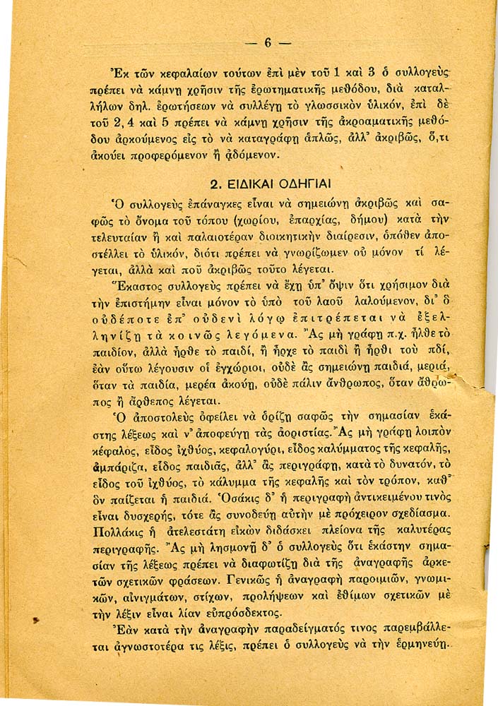 Οδηγίες συλλογής διαλεκτικού υλικού