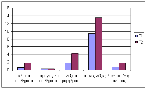 Γράφημα 4. Ποσοστά ορθογραφικών και τονικών λαθών