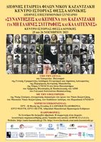 Η Διεθνής Εταιρεία Φίλων Νίκου Καζαντζάκη (ΔΕΦΝΚ) και το Κέντρο Ιστορίας Θεσσαλονίκης διοργανώνουν διεθνές επιστημονικό συνέδριο με θέμα: Συναντήσεις και κείμενα του Καζαντζάκη για μη Έλληνες συγγραφείς και καλλιτέχνες. Το Συνέδριο θα γίνει στις 25-26 Νοεμβρίου 2023 στο Κέντρο Ιστορίας Θεσσαλονίκης.