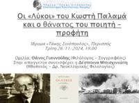 Εκδήλωση στο Ίδρυμα Τ. Σινόπουλος - Σπουδαστήριο ΝΕ Ποίησης: Θ. Γιαννούδης, Οι «Λύκοι» του Κωστή Παλαμά και ο θάνατος του ποιητή - προφήτη (26/11/24)