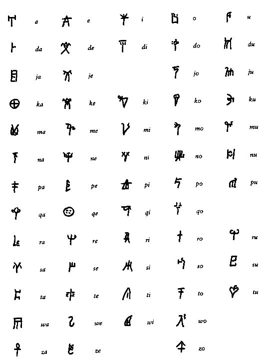 o-wi-de pu2-ke-qi-ri o-te wa-na-ka te-ke au-ke-wa da-mo-ko-ro