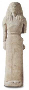 Το άγαλμα της Άρτεμης από τη Δήλο, στον αριστερό μηρό του οποίου είναι χαραγμένη η επιγραφή της Νικάνδρας. Το άγαλμα, ύψους 1,90 μ., έχει τον τύπο του ξοάνου με κατεβασμένα τα χέρια και ενωμένα τα πόδια. Έργο Ναξιώτη γλύπτη, αντιπροσωπευτικό του δαιδαλικού ρυθμού (Αθήνα, Εθνικό Αρχαιολογικό Μουσείο).