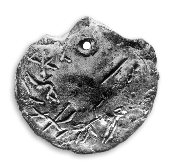 α. Πήλινο «μετάλλιο» με οπή ανάρτησης από την Κνωσό. Κρητική «ιερογλυφική» γραφή