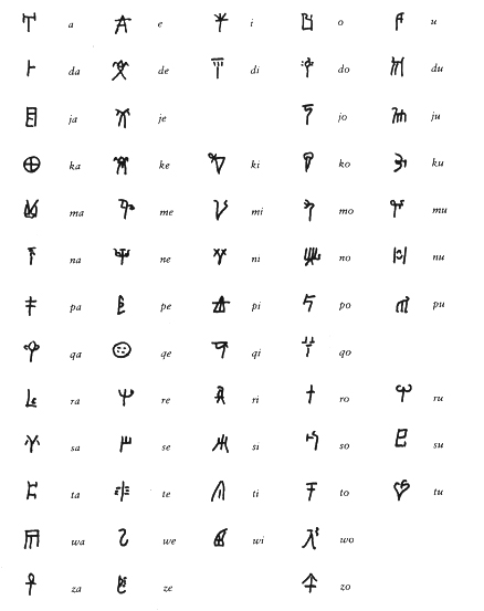 Το βασικό συλλαβάριο της γραμμικής Β (Χριστίδης 2005, 65)
