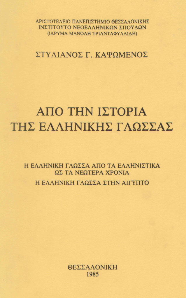 Στ. Kαψωμένος, Aπό την ιστορία της ελληνικής γλώσσας, Θεσσαλονίκη, Iνστιτούτο Nεοελληνικών Σπουδών, 1985