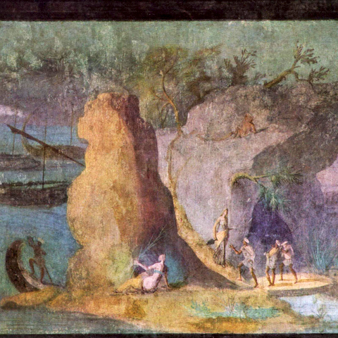 Από τις τοιχογραφίες ξεχωριστό είναι ένα σύμπλεγμα επτά παραστάσεων με τίτλο Τοπία της Οδύσσειας που αναπαριστά περιπέτειες από τις περιπλανήσεις του Οδυσσέα. Η μεγάλη πρωτοτυπία του εν λόγω συμπλέγματος έγκειται στο ότι για πρώτη φορά το φυσικό τοπίο —δέντρα, βράχια, νερά— έρχεται στο προσκήνιο, αγκαλιάζοντας και πολλές φορές επισκιάζοντας την ανθρώπινη μορφή. Έτσι, σε αντίθεση με την κλασική τέχνη που επικεντρωνόταν στον άνθρωπο, η ελληνιστική ζωγραφική εστιάζει στον φυσικό κόσμο που τον περιβάλλει.