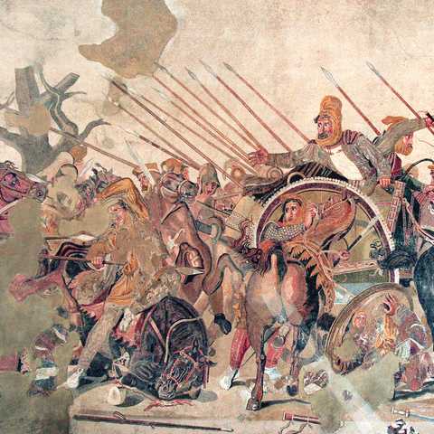 Ιδιαίτερη μνεία αξίζει να γίνει στα ψηφιδωτά που φαίνεται πως ήταν ελληνιστική επινόηση. Τα μωσαϊκά, όπως και οι τοιχογραφίες, αποτελούσαν αναπόσπαστο κομμάτι της αρχιτεκτονικής και φυσικά μια ακόμη απόδειξη της ελληνιστικής τάσης για χλιδή και επίδειξη. Βρέθηκαν σε όλα τα μέρη του ελληνιστικού κόσμου, τη Μακεδονία, την Πέργαμο, την Αλεξάνδρεια και την Πομπηία. Τα ψηφιδωτά απεικόνιζαν μυθολογικές παραστάσεις, τοπία, ζώα και αντικείμενα (λόγου χάρη θεατρικές μάσκες). Και εδώ απαντούν δείγματα πολιτικής εικονογραφίας, όπως στο ψηφιδωτό του Αλεξάνδρου (χρον. περ. 100 π.Χ.) που αναπαριστά τη μάχη του Μεγάλου Αλεξάνδρου εναντίον του Δαρείου Γ΄ από την Οικία του Φαύνου στην Πομπηία.