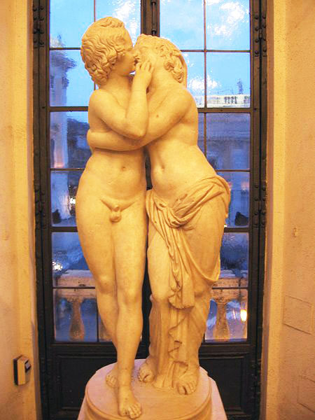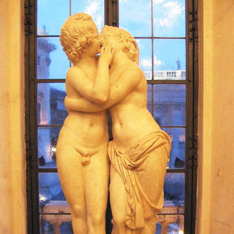 Φυσικά δεν λείπουν από την ελληνιστική τέχνη οι αναπαραστάσεις ερωτικών σκηνών. Ωστόσο, ο ελληνιστικός ερωτισμός διακρίνεται από ελαφρότητα και παιγνιώδη διάθεση παρά από πάθος και τραγικότητα. Το ερωτικό στοιχείο βρίσκεται όχι μόνο στα πολυάριθμα αγαλματίδια που απεικονίζουν τον Έρωτα σαν μικρό παιδί (για παράδειγμα ο Κοιμώμενος Έρωτας 150-100 π.Χ.), αλλά και σε εκλεπτυσμένες, ανάλαφρες ροκοκό παραστάσεις. Τέτοια είναι τα συμπλέγματα Αφροδίτη, Παν και Έρως (περ. 100 π.Χ.), όπου η Αφροδίτη απωθεί με το σανδάλι της τις άσεμνες χειρονομίες του Πάνα υπό το βλέμμα του φτερωτού Έρωτα, και το άγαλμα Έρως και Ψυχή (περ. 150-100 π.Χ.) που εστιάζει στον τρυφερό εναγκαλισμό και το φιλί των δύο εραστών.