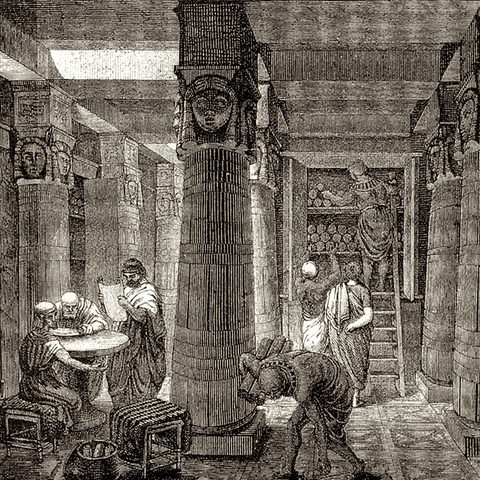 · L. Canfora. 1989. Η χαμένη βιβλιοθήκη της Αλεξάνδρειας. Μετάφρ. Γ. Αρβανίτης. Αθήνα: Αλεξάνδρεια.