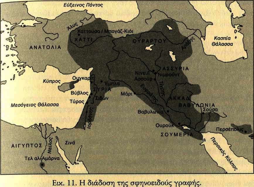 Εικ. 1: Γράφοντας σε πήλινη πινακίδα (σφηνοειδής γραφή)