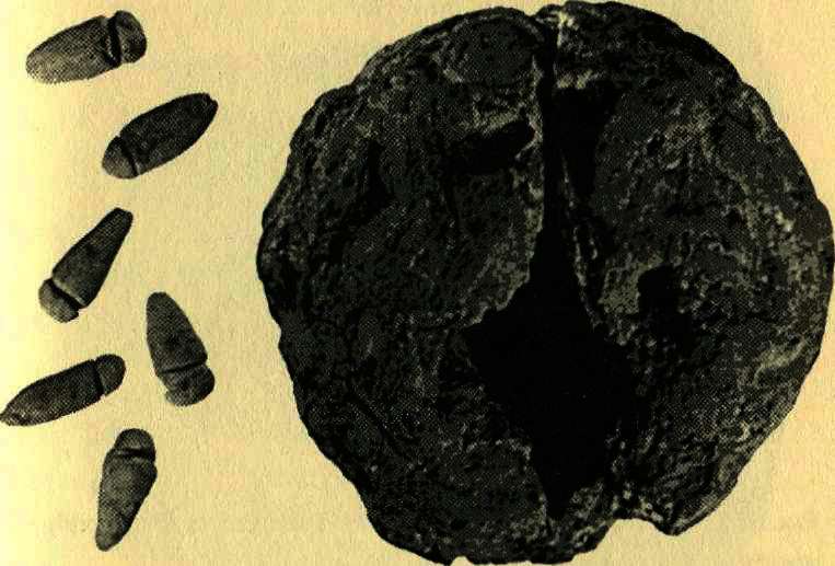 Εικ. 13. Πήλινα εγχάρακτα ωοειδή αντικείμενα και ο «φάκελος» τους.