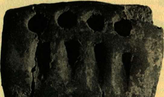 Εικ. 14. Πήλινη πινακίδα με τέσσερα κυκλικά και τέσσερα σφηνοειδή «πατημένα» σημάδια.
