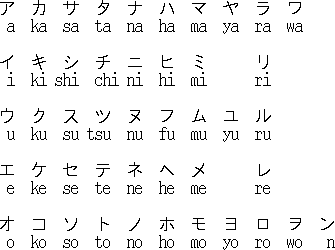 Εικ. 19: Το ιαπωνικό συλλαβάριο με τη συλλαβή που αποδίδει κάθε χαρακτήρας
