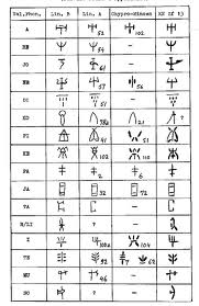 Εικ. 10: Πίνακας σύγκρισης των συμβόλων της γραμμικής Α, της γραμμικής Β και μιας κυπρομινωικής γραφής