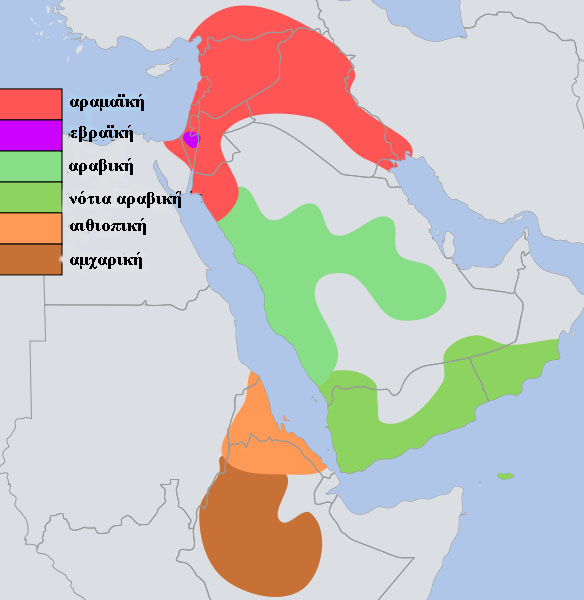 Εικ. 2a: Κατανομή των σημιτικών γλωσσών στα χρόνια του Χριστού