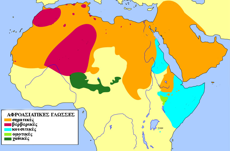 Εικ. 2b: Κατανομή των σημιτικών γλωσσών σήμερα (μέσα στην ευρύτερη οικογένεια των αφροασιατικών γλωσσών)