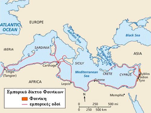 Εικ. 6: Χάρτης του εμπορικού δικτύου των Φοινίκων