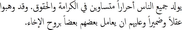 Εικ. 8: Δείτε το άρθρο 1 της Διακήρυξης των Δικαιωμάτων του Ανθρώπου, που ακούσατε πριν στα αραβικά, γραμμένο σε αραβικό αλφάβητο.