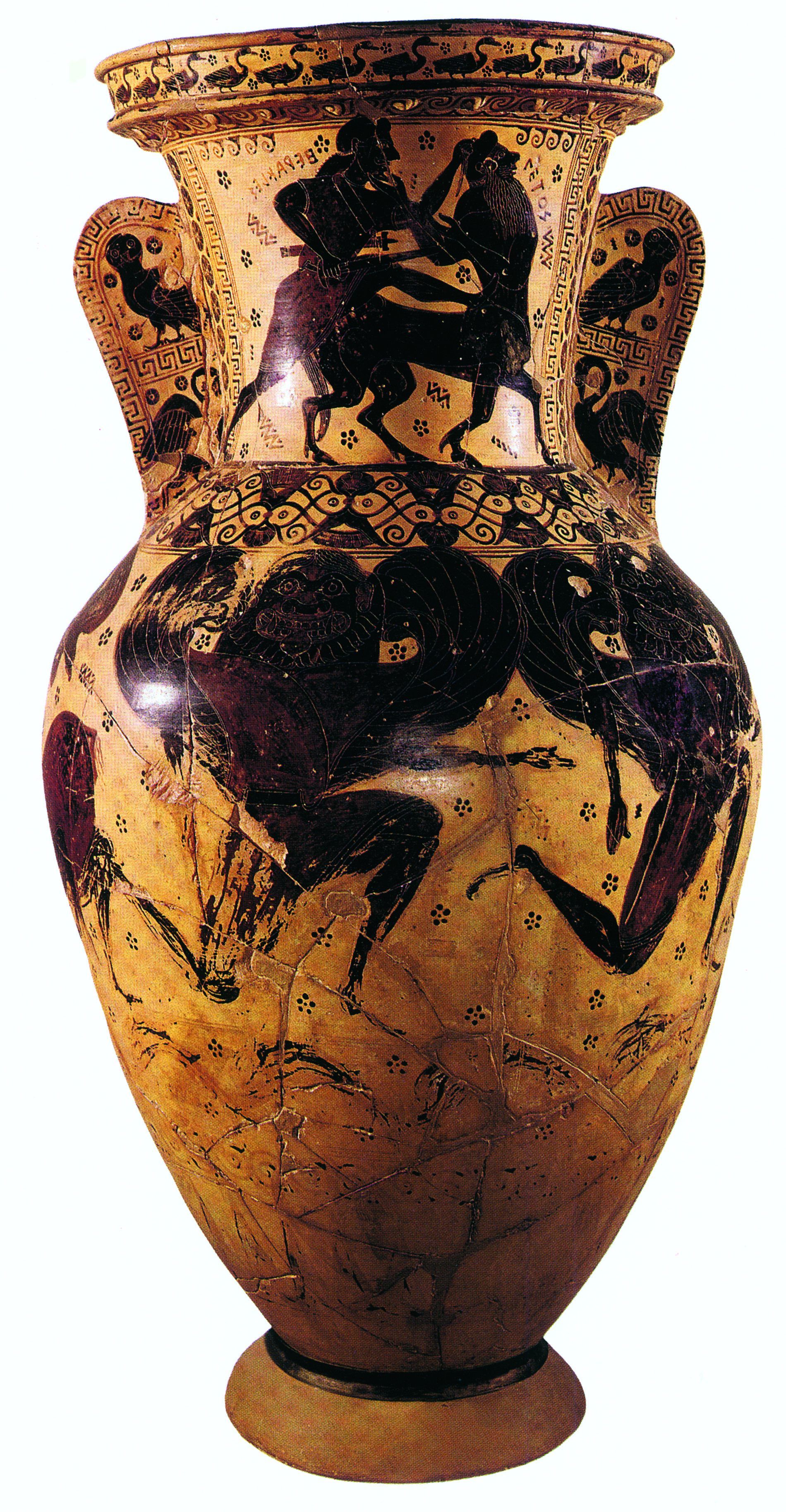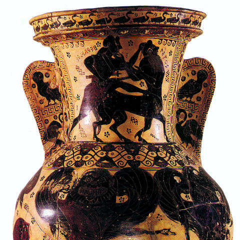 Ανάμεσα στα παλαιότερα αττικά αγγεία που έχουν διακοσμηθεί με τη μελανόμορφη τεχνική, αξιομνημόνευτα είναι εκείνα που ανακαλύφθηκαν σε τάφους του αρχαίου δήμου Αναγυρούντος, στη σημερινή Βάρη. Οι αγγειογραφίες τους είναι πραγματικά εντυπωσιακές· πρόκειται για έργα ικανών ζωγράφων των τελευταίων δεκαετιών του 7ου αιώνα π.Χ., οι οποίοι, αν και παραμένουν ανώνυμοι, μας δίνουν συχνά τη δυνατότητα να αναγνωρίσουμε την ιδιαίτερη καλλιτεχνική τους γλώσσα, με άλλα λόγια το προσωπικό τους στιλ. Τον σημαντικότερο από αυτούς τον αποκαλούμε συμβατικά «ζωγράφο του Νέσσου» από το γνωστότερο έργο του, έναν αμφορέα που βρέθηκε στο νεκροταφείο του Κεραμεικού στην Αθήνα, στον λαιμό του οποίου εικονίζεται η πάλη του Ηρακλή με τον Κένταυρο Νέσσο (εικ. 59).