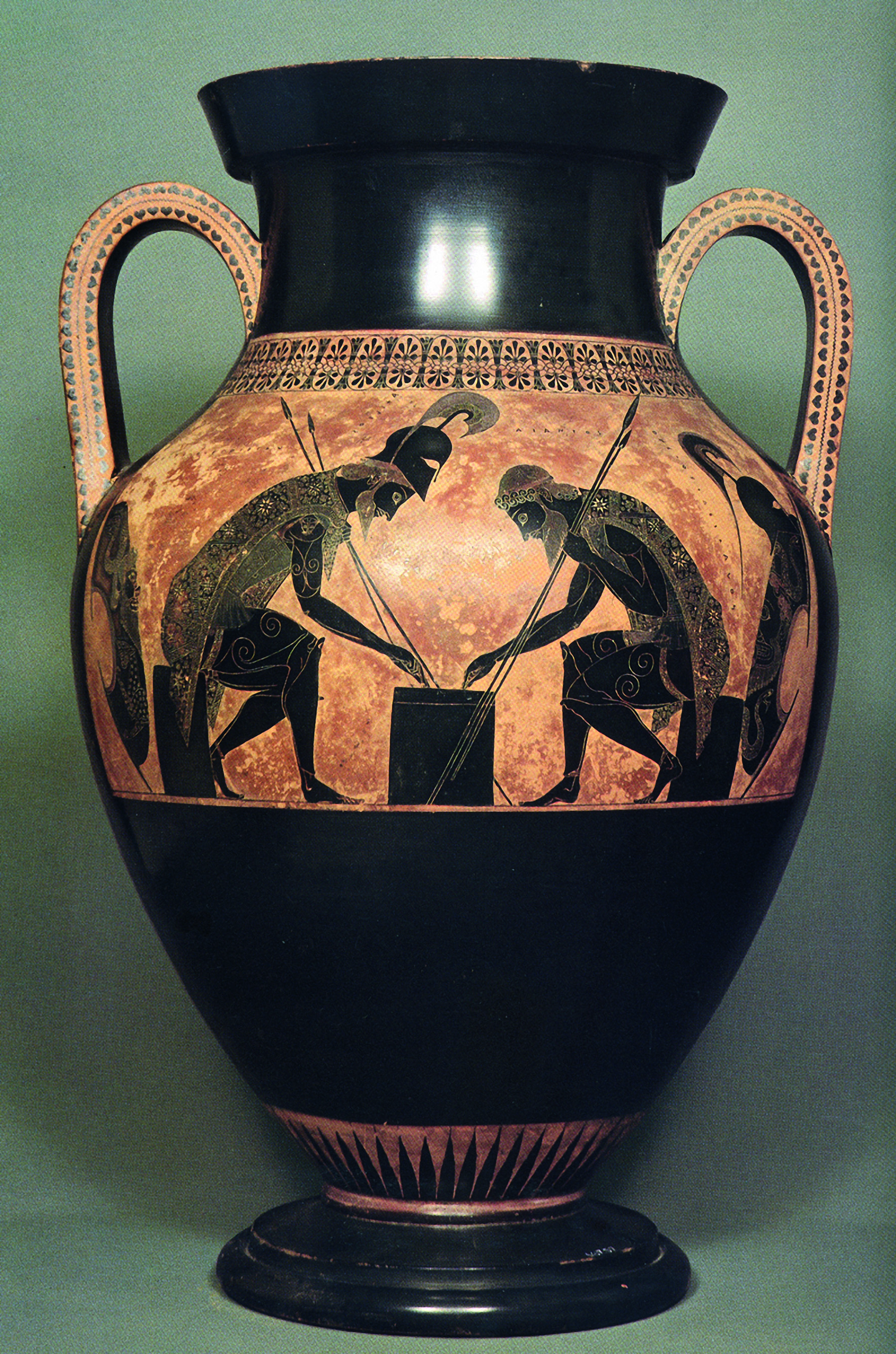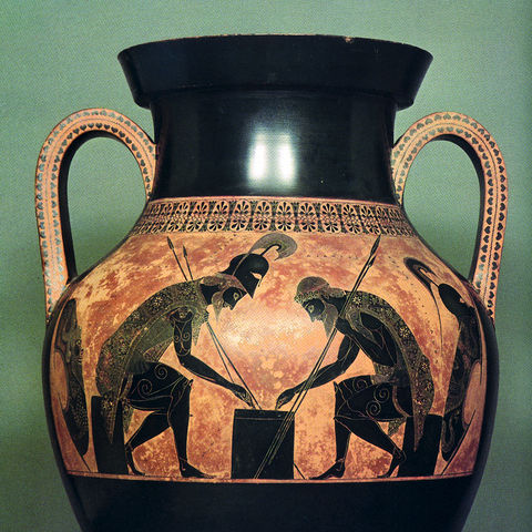 • 70. Αμφορέας του Εξηκία, γύρω στο 530 π.Χ.: Αχιλλέας και Αίας. Βατικανό, Museo Gregoriano Etrusco.