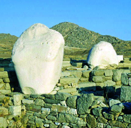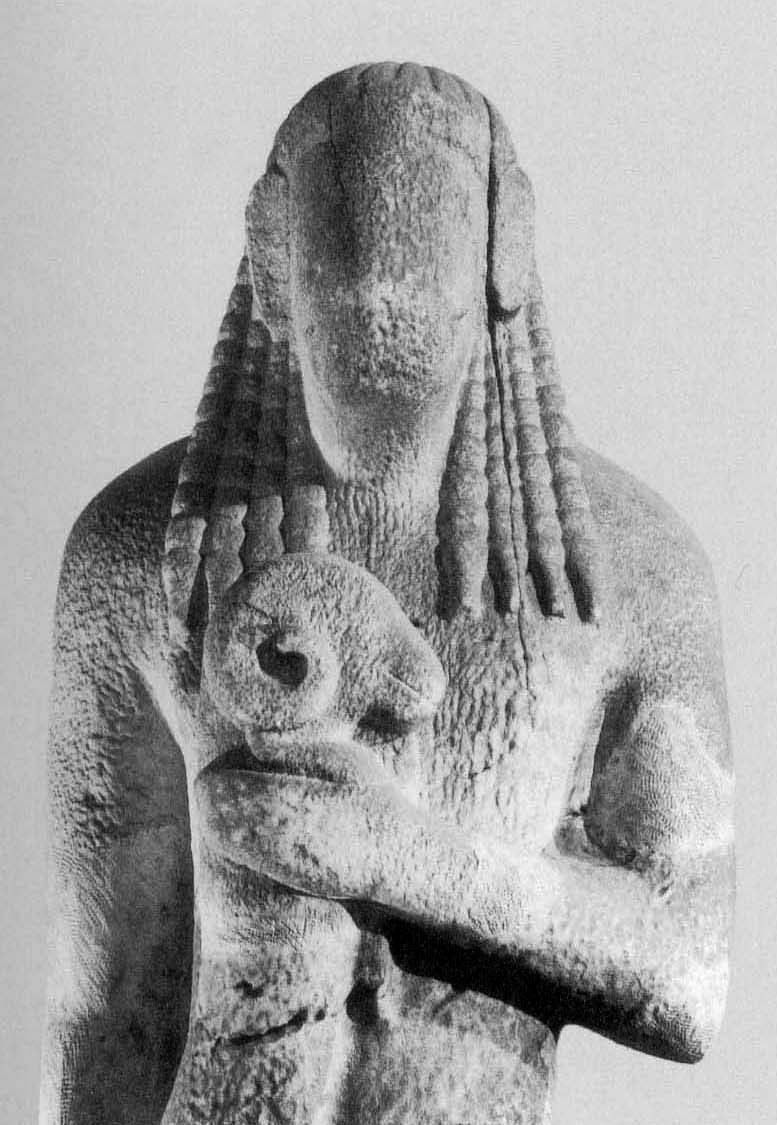 Όλα δείχνουν ότι η συμβολή των Κυκλάδων, και ειδικά της Νάξου και των τεχνιτών της, στην ανάπτυξη της μνημειακής πλαστικής στην αρχαϊκή Ελλάδα ήταν πολύ μεγάλη. Στη Νάξο συναντούμε τα πρώτα μεγάλα λατομεία μαρμάρου, όπου οι γλύπτες αναζητούσαν το υλικό για τα έργα τους. Η πρώτη κατεργασία των αγαλμάτων γινόταν στο λατομείο. Με τον τρόπο αυτό ελαττωνόταν ο όγκος και κυρίως το βάρος των γλυπτών που έπρεπε να μεταφερθούν, και επιπλέον οι τεχνίτες είχαν τη δυνατότητα να ανακαλύψουν τυχόν ελαττώματα του υλικού, που μπορούσαν να δημιουργήσουν ρωγμές σε ένα άγαλμα και να το καταστρέψουν. Αυτός είναι πιθανότατα ο λόγος που κάποια γλυπτά έμειναν μισοδουλεμένα στα λατομεία, σιωπηλοί μάρτυρες του τρόπου εργασίας των γλυπτών της αρχαϊκής εποχής. Το πιο γνωστό παράδειγμα είναι ένα άγαλμα του πρώτου τετάρτου του 6ου αιώνα, που κείτεται ως σήμερα σε ένα αρχαίο λατομείο στη θέση Απόλλωνας, κοντά στη βόρεια ακτή της Νάξου (εικ. 83)· Δεν πρόκειται για κούρο, αλλά για άγαλμα του μεγάλου θεού της Νάξου, του Διονύσου, που εικονίζεται γενειοφόρος και ντυμένος με ιμάτιο. Σε πιο προχωρημένο στάδιο επεξεργασίας βρίσκεται ένα σύγχρονο περίπου μεγάλο άγαλμα όρθιου νέου άνδρα από τη Θάσο, αποικία των Πάριων, που κρατάει ένα κριάρι (γι᾽ αυτό ονομάζεται Κριοφόρος) και εικονίζει πιθανότατα τον θεό Ερμή (εικ. 84). Το άγαλμα αυτό είχε μεταφερθεί μισοτελειωμένο στην πόλη της Θάσου, όπου επρόκειτο να στηθεί. Πριν όμως ολοκληρωθεί η επεξεργασία του, ο γλύπτης ανακάλυψε ότι το μάρμαρο είχε ελαττώματα και εγκατέλειψε το έργο.