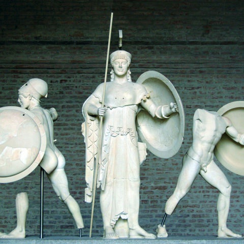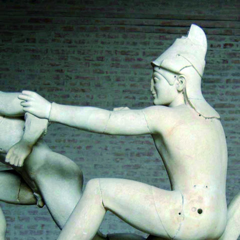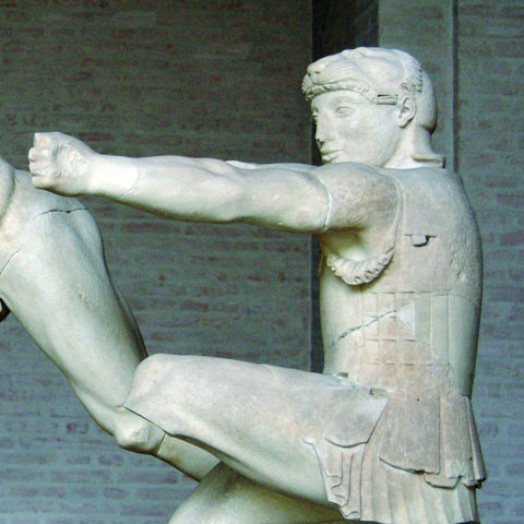 Οι γλυπτές αετωματικές συνθέσεις του ναού της Αφαίας εικονίζουν μάχες από δύο διαφορετικές εκστρατείες των Ελλήνων εναντίον της Τροίας, που είχαν σημασία για τους Αιγινήτες (εικ. 160). Πραγματικά, σύμφωνα με τη μυθολογική παράδοση, δεν είχε γίνει ένας μόνο Τρωικός Πόλεμος, αλλά δύο: ο πρώτος Έλληνας που είχε πολιορκήσει και καταλάβει την Τροία ήταν ο Ηρακλής, με κύριο σύμμαχο τον Τελαμώνα, τον γιο του Αιακού, γιου του Δία και της νύμφης Αίγινας, από την οποία το νησί είχε πάρει το όνομά του. Ο Αιακός έγινε ο πρώτος βασιλιάς της Αίγινας και ο γιος του Τελαμώνας βασίλεψε στη γειτονική Σαλαμίνα. Γιος και διάδοχος του Τελαμώνα ήταν ο Αίας, που συμμετείχε μαζί με τον αδελφό του τον Τεύκρο στη δεύτερη εκστρατεία εναντίον της Τροίας, τον γνωστό από τα ομηρικά έπη Τρωικό Πόλεμο, συμβάλλοντας μάλιστα καθοριστικά στη νίκη των Ελλήνων, που όμως τον αδίκησαν και δεν τον επιβράβευσαν όπως του άξιζε. Έτσι οι Αιγινήτες μπορούσαν να περηφανεύονται ότι οι πρόγονοι τους είχαν κατακτήσει δύο φορές την Τροία, αφού πρώτα ο γιος και έπειτα ο εγγονός του πρώτου τους βασιλιά είχαν παίξει σημαντικό ρόλο στις δύο εκστρατείες εναντίον της. Στο κέντρο και των δύο συνθέσεων βρίσκεται η Αθηνά, η θεά που προστάτευε τους Έλληνες και τους βοήθησε να νικήσουν και στους δύο Τροπικούς Πολέμους (εικ. 161). Στο ανατολικό αέτωμα αναγνωρίζεται εύκολα η μορφή του Ηρακλή (εικ. 162) με το τόξο του και το κράνος που απολήγει σε λεοντοκεφαλή — αναφορά στο λιοντάρι της Νεμέας που είχε σκοτώσει ο ήρωας. Στο δυτικό αέτωμα μπορούμε να ταυτίσουμε τη μορφή του Αλεξάνδρου-Πάρη, που εικονίζεται με τα χαρακτηριστικά ενός Σκύθη τοξότη (εικ. 163). Ξέρουμε ότι το όπλο του Πάρη ήταν το τόξο. Όσο για τη σκυθική ενδυμασία, αυτή είναι ένας αναχρονισμός που μας οδηγεί στο τέλος του 6ου αιώνα π.Χ., όταν οι Σκύθες τοξότες ήταν περιζήτητοι μισθοφόροι, και υπαινίσσεται σαφώς ότι ο Πάρης δεν ήταν Έλληνας, αλλά βάρβαρος πρίγκιπας. Είμαστε στα χρόνια της ιωνικής εξέγερσης και των Περσικών Πολέμων (500-480 π.Χ.), τότε που Έλληνες αρχίζουν να συνδέουν τον Τρωικό Πόλεμο με τους αγώνες τους εναντίον των Περσών και των άλλων βαρβάρων της Ανατολής, όπως το κάνει αργότερα ο Ηρόδοτος.
