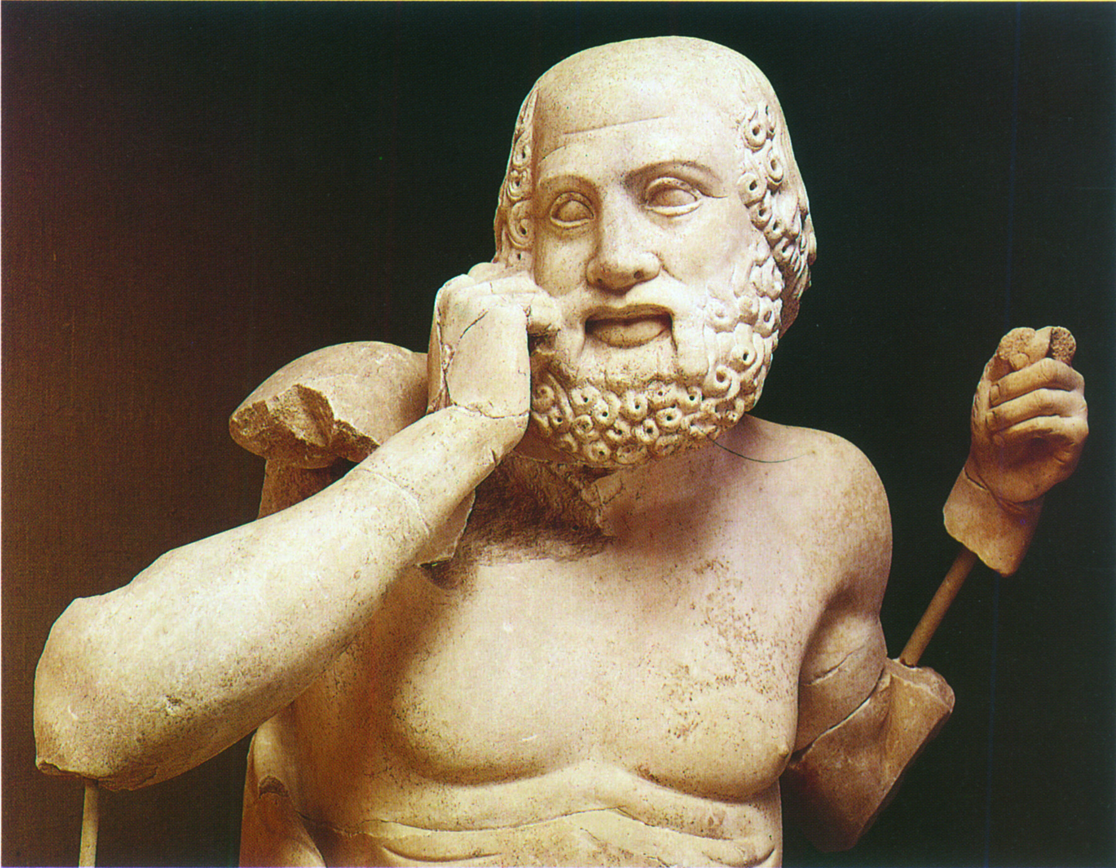 Το λατρευτικό άγαλμα του Δία, έργο του Φειδία από ελεφαντόδοντο και χρυσό, κατασκευάστηκε και τοποθετήθηκε στον σηκό αρκετά χρόνια μετά την αποπεράτωση του ναού, στα χρόνια 435-430 π.Χ. (βλ. κεφ. 5, ενότητα 5.2.3). Αλλά ο μαρμάρινος γλυπτός διάκοσμος, που σώζεται σε σχετικά καλή κατάσταση, είναι σύγχρονος με την κατασκευή του ναού. Ο διάκοσμος αυτός περιλαμβάνει δώδεκα ανάγλυφες μετόπες τοποθετημένες ανά έξι επάνω από τον πρόναο και επάνω από τον οπισθόδομο καθώς και δύο αετωματικές συνθέσεις. Στις μετόπες εικονίζονται οι δώδεκα άθλοι του Ηρακλή. Η τεχνοτροπία είναι πολύ διαφορετική από εκείνη των μετοπών του θησαυρού των Αθηναίων και των αετωμάτων του ναού της Αφαίας. Εδώ οι μορφές στέκονται και κινούνται πολύ πιο ελεύθερα και ο τρόπος με τον οποίο αποδίδονται τα σώματα και τα ρούχα τα κάνει να φαίνονται πιο φυσικά. Ενδεικτικό παράδειγμα είναι η μετόπη που εικονίζει τον Ηρακλή καθώς προσπαθεί να καθαρίσει την κόπρο του Αυγεία (εικ. 166). Ο ήρωας ετοιμάζεται να ανοίξει με λοστό ένα ρήγμα στον τοίχο του στάβλου, από όπου θα εισρεύσει το ορμητικό νερό του Αλφειού και θα παρασύρει την κόπρο· πίσω του η προστάτιδά του θεά, η Αθηνά, του δείχνει με το δόρυ της το σημείο όπου πρέπει να χτυπήσει.