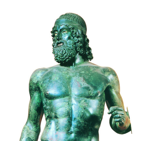 • 185. Χάλκινο άγαλμα ήρωα από τη θάλασσα κοντά στο Riace της Καλαβρίας, γύρω στο 460 π.Χ. Ρήγιο Καλαβρίας, Museo Nazionale.
