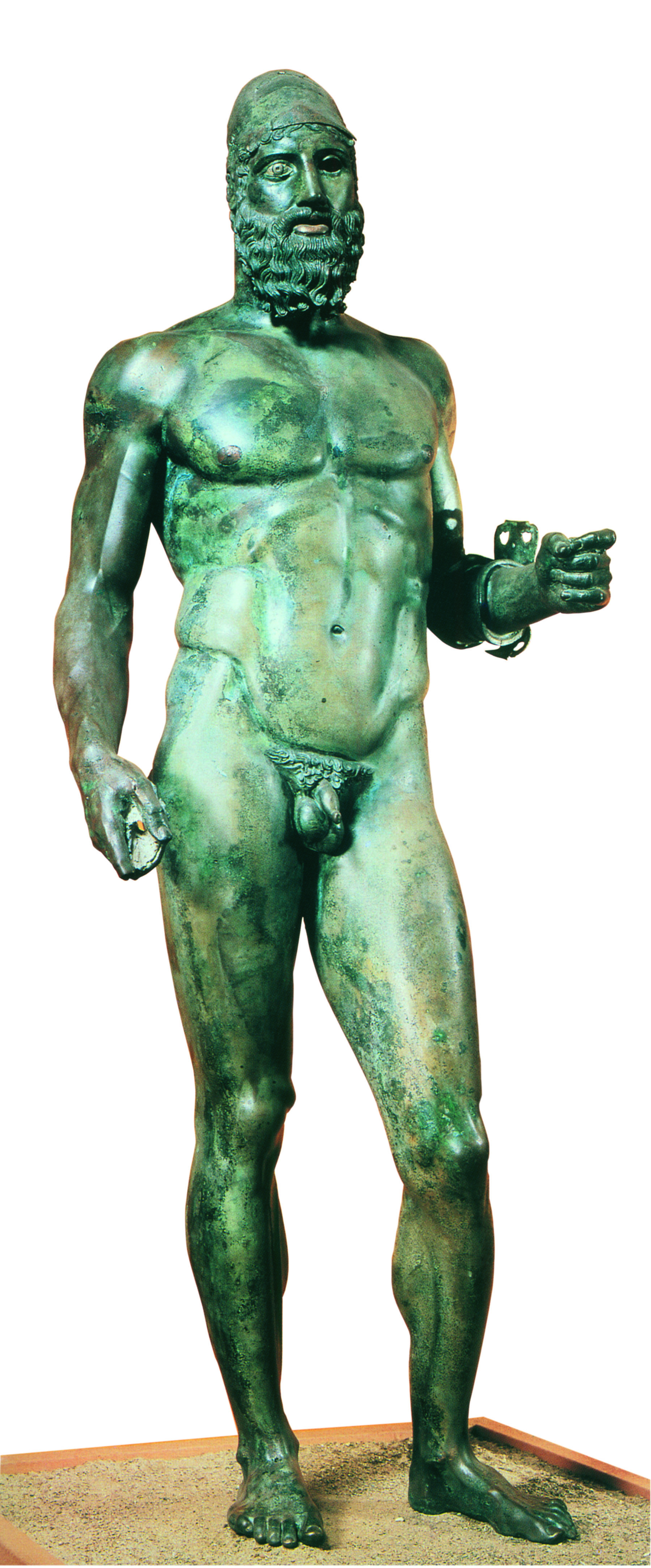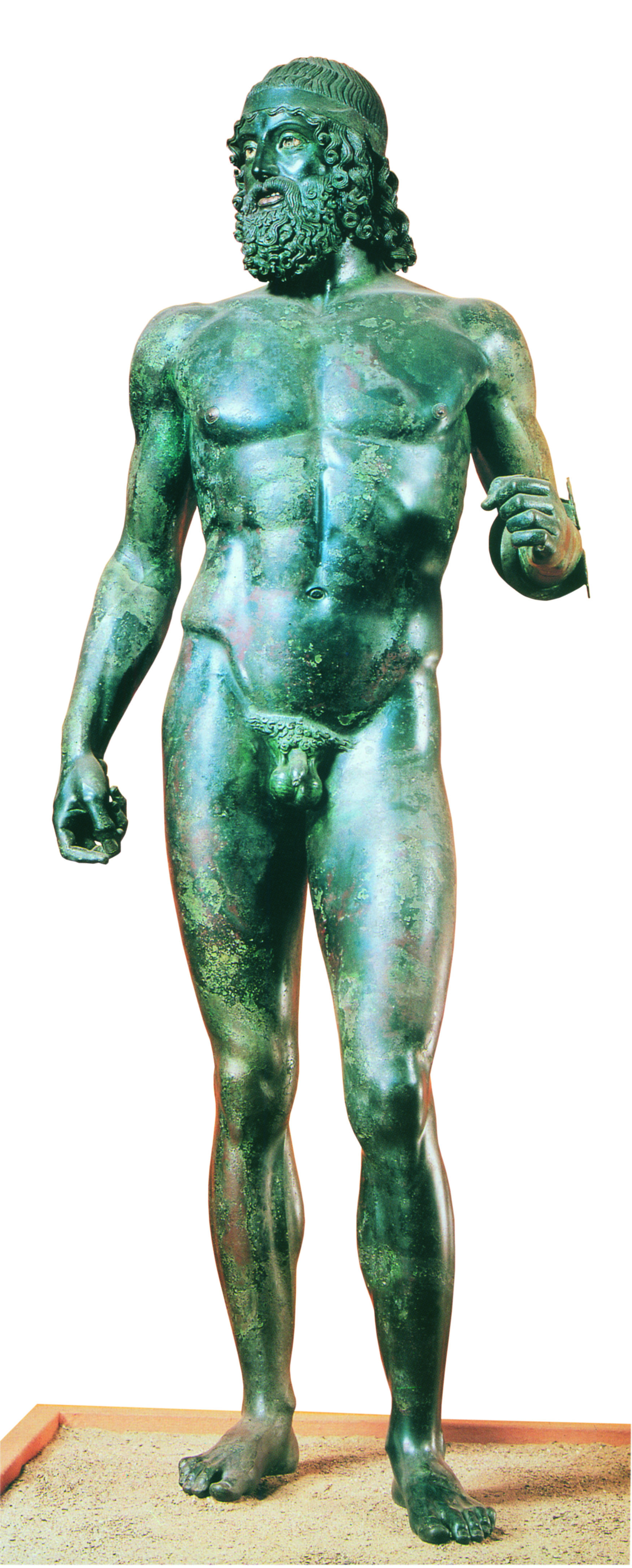 • 184. Χάλκινο άγαλμα ήρωα από τη θάλασσα κοντά στο Riace της Καλαβρίας, 440-430 π.Χ. Ρήγιο Καλαβρίας, Museo Nazionale.