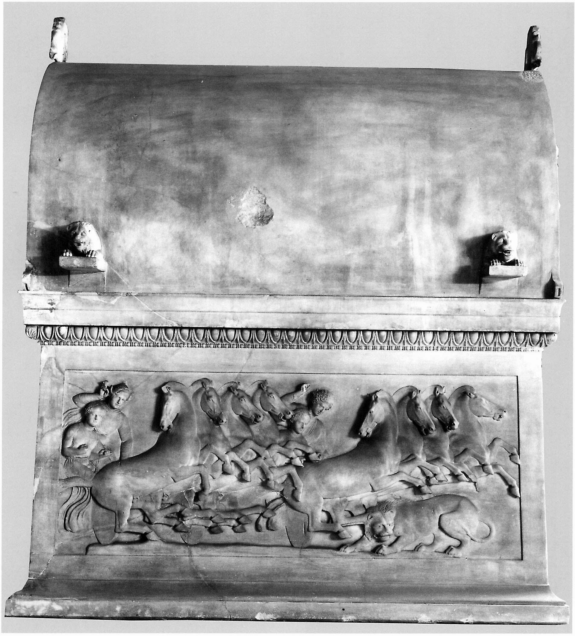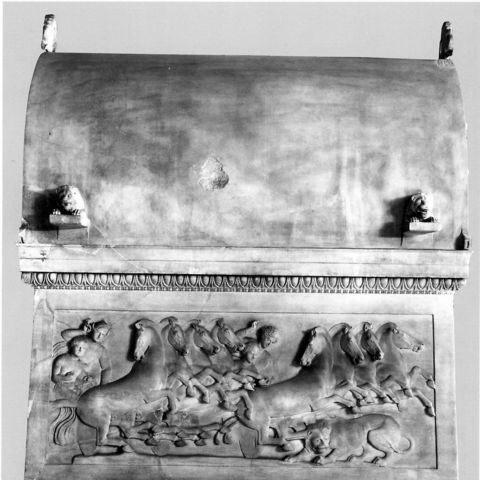 Άλλο παράδειγμα της ακτινοβολίας της ελληνικής τέχνης στην Ανατολή είναι μια μεγάλη μαρμάρινη σαρκοφάγος με ανάγλυφες παραστάσεις από παριανό μάρμαρο, σήμερα στο Αρχαιολογικό Μουσείο της Κωνσταντινούπολης (εικ. 247), που βρέθηκε στη βασιλική νεκρόπολη της Σιδώνας στην ακτή της Φοινίκης, στον σημερινό Λίβανο. Η σαρκοφάγος είναι λυκιακή, δηλαδή ίδιου τόπου με αυτές που συναντούμε στη Λυκία, και δεν αποκλείεται να κατασκευάστηκε εκεί και να μεταφέρθηκε είτε ως δώρο, είτε αγορασμένη, είτε ως λάφυρο πολέμου στη Σιδώνα. Όπως και αν είναι, έχουμε να κάνουμε με ένα έργο αναμφίβολα ελληνικό. Στο συμπέρασμα αυτό οδηγεί το υλικό, που είναι παριανό μάρμαρο, αλλά και η τεχνοτροπία των ανάγλυφων παραστάσεων. Τα θέματα στις μακρές πλευρές είναι παρμένα από τις συνήθειες των ηγεμόνων της Ανατολής και εικονίζουν το κυνήγι άγριων ζώων, ενός λιονταριού και ενός κάπρου, από πολυπρόσωπες ομάδες ανδρών επάνω σε άρματα και σε άλογα. Στις στενές πλευρές τα θέματα είναι παρμένα από την ελληνική μυθολογία και εικονίζουν Κενταύρους: στη μια δύο που μάχονται μεταξύ τους και στην άλλη δύο που χτυπούν τον Καινέα για να τον χώσουν στο έδαφος, σύμφωνα με τον μύθο που είδαμε πιο πάνω. Στα τύμπανα των αετωμάτων εικονίζονται μυθικά όντα, σφίγγες και γρύπες. Η λυκιακή σαρκοφάγος από τη Σιδώνα χρονολογείται, όπως και το μνημείο των Νηρηίδων της Ξάνθου, στο τέλος του 5ου ή στις αρχές του 4ου αιώνα (410-390 π.Χ.) και είναι έργο ενός ιωνικού ή νησιώτικου (ίσως παριανού) εργαστηρίου, που είχε όμως γνωρίσει από κοντά την αθηναϊκή τέχνη των χρόνων του Παρθενώνα και του «πλούσιου ρυθμού», και ακολουθούσε τα πρότυπά της.