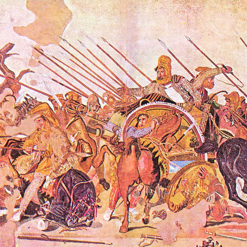 Το 1831 ανακαλύφθηκε κατά την ανασκαφή μιας μεγάλης και πολυτελούς κατοικίας στην Πομπηία (Casa del Fauno) ένα μεγάλο ψηφιδωτό δάπεδο (εικ. 256) που προκάλεσε αμέσως τον θαυμασμό. Το ψηφιδωτό αυτό εκτίθεται στο Αρχαιολογικό Μουσείο της Νεάπολης και, όπως γρήγορα αναγνώρισαν οι αρχαιολόγοι, αντιγράφει πιστά ένα σημαντικό έργο ζωγραφικής με θέμα μια μάχη, στην οποία ο Μέγας Αλέξανδρος νίκησε κατά κράτος τον βασιλιά των Περσών Δαρείο. Η μεγάλων διαστάσεων παράσταση (5,12 m x 2,71 m χωρίς το πλαίσιο) είναι το πρώτο αρχαιολογικό εύρημα που πρόσφερε στους μελετητές της αρχαίας τέχνης αλλά και στο ευρύτερο κοινό τη δυνατότητα να προσεγγίσουν μια μεγάλη ζωγραφική σύνθεση του όψιμου 4ου αιώνα π.Χ. Η προσεκτική μελέτη του ψηφιδωτού, που κατασκευάστηκε πιθανότατα στο δεύτερο μισό του 2ου αιώνα π.Χ., έδειξε ότι επισκευάστηκε ήδη στην Αρχαιότητα τουλάχιστον μία φορά. Επιπλέον, σε ορισμένα σημεία κοντά στο μέσο της εικόνας εμφανίζονται αδεξιότητες και ασάφειες που εξηγούνται μόνο αν δεχτούμε ότι η παράσταση συμπτύχθηκε για να προσαρμοστεί σε έναν χώρο με διαφορετικές διαστάσεις από το πρωτότυπο, είτε από τους ίδιους τους κατασκευαστές του ψηφιδωτού είτε από κάποιους μεταγενέστερους επισκευαστές του.