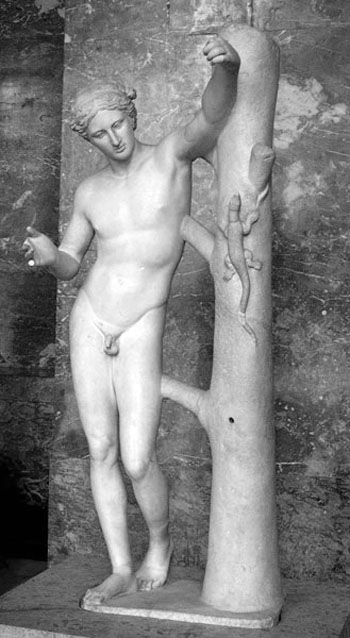 • 284. Αντίγραφο του Απόλλωνος Σαυροκτόνου του Πραξιτέλη. Παρίσι, Λούβρο.
