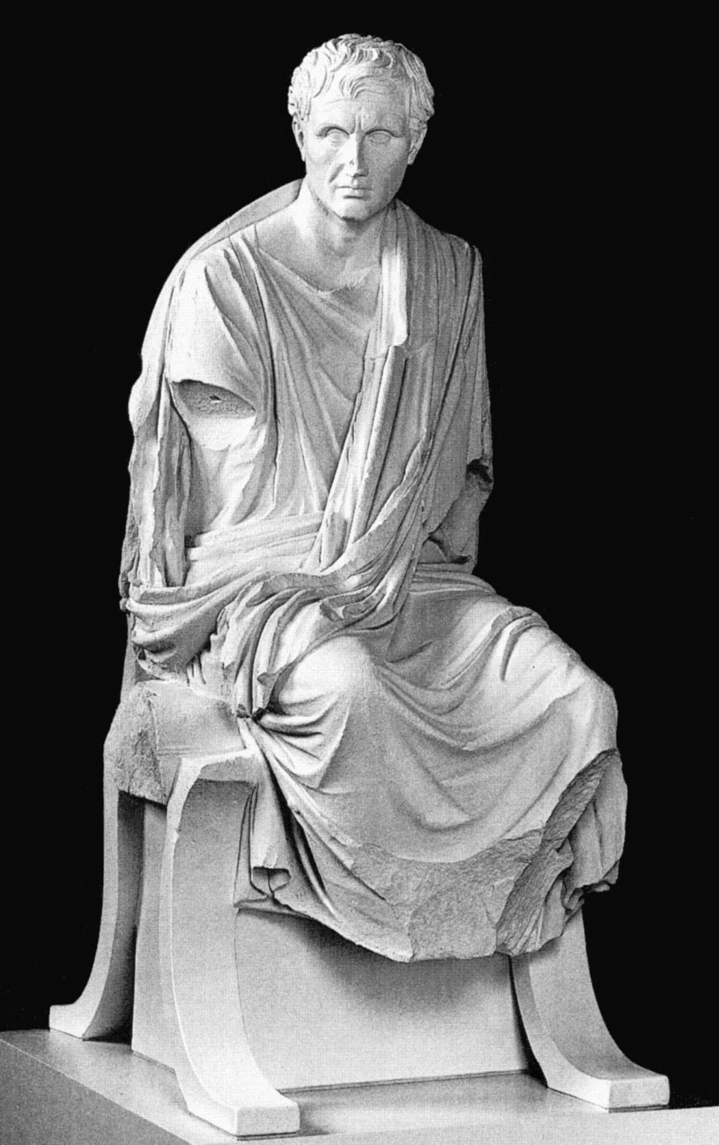 • 331. Αναπαράσταση σε γύψο του ανδριάντα του Μενάνδρου στο θέατρο του Διονύσου στην Αθήνα. Göttingen, Gipssammlung des Archäologischen Instituts.