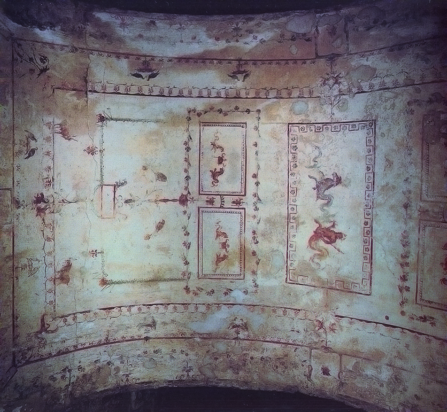 Παρόμοιες τάσεις συναντούμε και στις διακοσμητικές τέχνες, όπου καθοριστική υπήρξε στο τέλος του 15ου αιώνα η ανακάλυψη των διακοσμήσεων της οροφής της Domus Aurea, του Χρυσού Οίκου στον λόφο Oppius της Ρώμης (εικ. 342)· πρόκειται για το ανάκτορο που έκτισε ο Νέρων το 64-68 μ.Χ. Στις τοιχογραφίες αυτές επικρατούν πλούσια φυτικά θέματα, έλικες, σπείρες, άκανθοι, αλλά και φτερωτές μορφές, Σειρήνες, Κένταυροι κ.ά., καθώς και λίγες μυθολογικές σκηνές που αποδίδονται συνοπτικά σαν σκιαγραφίες. Οι τοιχογραφίες αυτές δημιούργησαν μια τεχνοτροπία που έγινε γνωστή ως γκροτέσκο (από τη λέξη grotta "σπηλιά", διακόσμηση σπηλαίων) και που διαδόθηκε ευρύτατα σε όλη την Ευρώπη.