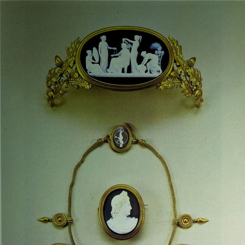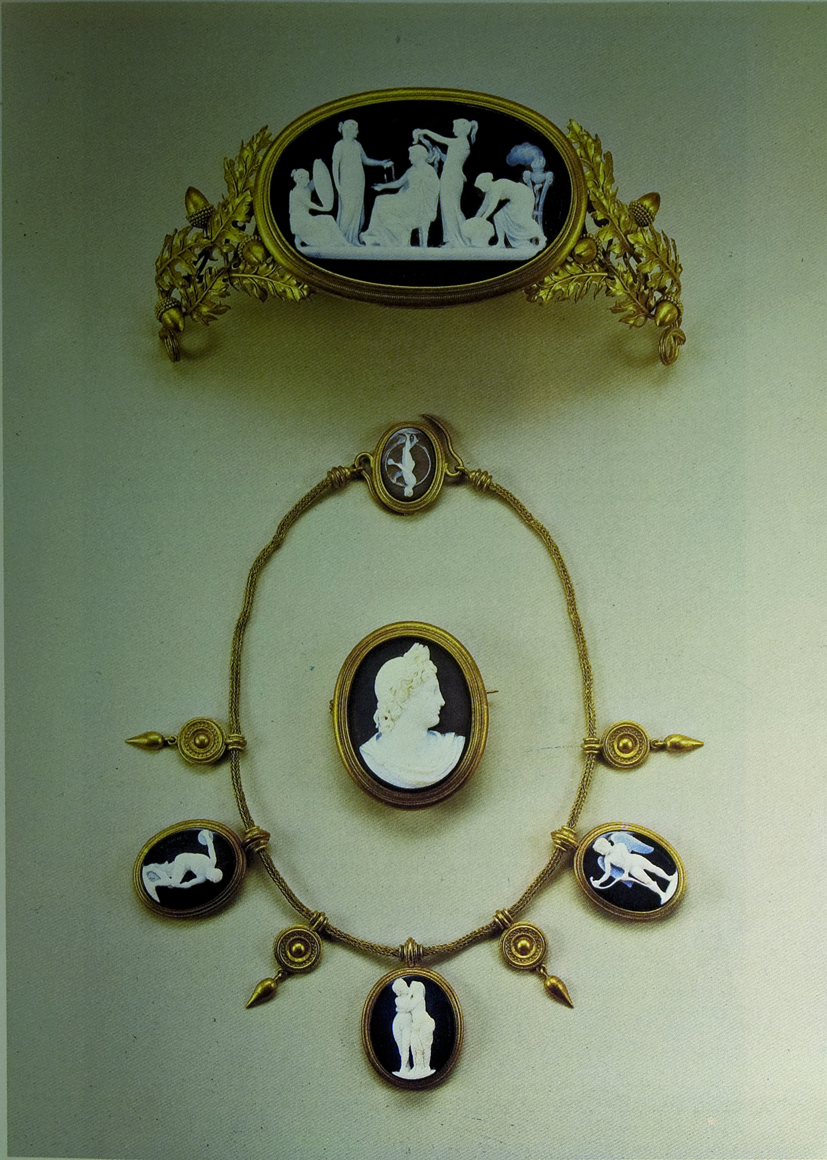 Στην Ευρώπη των αρχών του 19ου αιώνα τα ενδύματα έγιναν αντικείμενο πολιτικών και αρχαιολογικών συσχετισμών. Λευκά μακριά λεπτά φορέματα με ψηλό ζώσιμο και φουσκωτά μανίκια θυμίζουν όψιμες κλασικές ή ελληνιστικές ενδυμασίες και αποτελούν συνειδητή επιλογή για τη μόδα της εποχής της Δημοκρατίας ή του Διευθυντηρίου. Το στιλ αυτό, που ήταν επίσης το αγαπημένο της αυτοκράτειρας Ιωσηφίνας και γι᾽ αυτό ονομάστηκε αυτοκρατορικό (empire), το αποτυπώνει πολύ χαρακτηριστικά ο Νταβίντ (1748-1825) στο πορτρέτο της Κυρίας Ρεκαμιέ (περ. 1800) στο Λούβρο (εικ. 417), όχι μόνο στο ένδυμα και στην κόμμωση της μορφής, αλλά και στα αρχαιοπρεπή έπιπλα, το ανάκλιντρο και το ρωμαϊκού τύπου κηροπήγιο, χαρακτηριστικά για το στιλ της εποχής. Αντίστοιχα της μόδας ήταν κοσμήματα με αρχαιοπρεπή μοτίβα, με πολλούς ένθετους καμέο και άλλους λίθους με παραστάσεις, που συχνά αντέγραφαν σπουδαία γλυπτά της Αρχαιότητας, όπως τον Δισκοβόλο του Μύρωνα (εικ. 183), τον Απόλλωνα του Belvedere (εικ. 293) κ.ά. Ο κυριότερος εκφραστής αυτού του «ελληνικού» στιλ της κοσμηματοποιίας στα μέσα του 19ου αιώνα στη Ρώμη ήταν ο χρυσοχόος Καστελάνι (1793-1865· εικ. 418).
