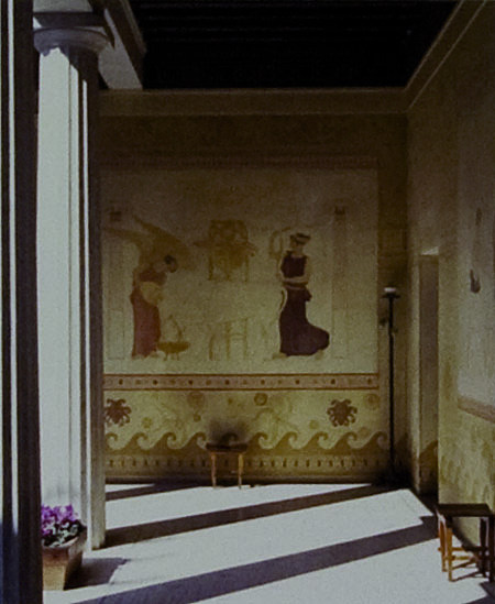 Στην αντίληψη και στο γούστο του νέου στιλ ανήκει ένα μοναδικό κτήριο που χρησιμοποιεί με υπερβολικό τρόπο τα αρχαία πρότυπα. Πρόκειται για τη βίλα Kerylos (εικ. 460), το όνειρο του σπουδαίου Γάλλου ιστορικού και ελληνιστή Τεοντόρ Ρενάκ (1860-1928), που κατάφερε να το πραγματοποιήσει σε μια χερσόνησο στο Beaulieu-Sur-Mer στην Côte d᾽Azur κοντά στη Nice της Γαλλίας. Η βίλα που κτίστηκε τα χρόνια 1902-1908 συνεχίζει την παράδοση του Πότσνταμ και του Aschaffenburg. Είναι εμπνευσμένη από την αρχαία Ελλάδα όχι μόνον σαν αρχιτεκτόνημα, αλλά και στην εσωτερική διακόσμηση (εικ. 461), στην επίπλωση, σε κάθε λεπτομέρεια, σε όλα τα χρηστικά αντικείμενα και ασφαλώς στη διαμόρφωση των κήπων. Αρχιτέκτονας της βίλας ήταν ο Εμανουέλε Ποντρέμολι (1865-1956), συγγραφέας αρχαιολογικών άρθρων με άριστη γνώση της τέχνης της Αρχαιότητας, που είχε βραβευτεί στη Ρώμη το 1890. Για το έργο αυτό χρησιμοποίησε επιπλέον σπάνιες εκδόσεις αρχαίων μνημείων, τις οποίες είχε ο Ρενάκ στην κατοχή του: Ντ᾽Αρκανβίλ, Φουρτβένγκλερ/Ράιχολντ, κ.ά. Η βίλα εξακολουθεί και σήμερα να είναι ένα ζωντανό μουσείο, κέντρο ελληνιστικών σπουδών.