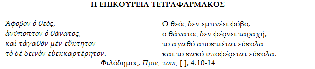 Σκεπτόμενος τις συγκεκριμένες συνθήκες της ανθρώπινης ζωής, βασισμένος στην αμεσότητα των αισθήσεων και σε εμπειρικές παρατηρήσεις, ξεκίνησε ο Επίκουρος για να φτιάξει τη φιλοσοφική θεραπευτική του πρόταση.