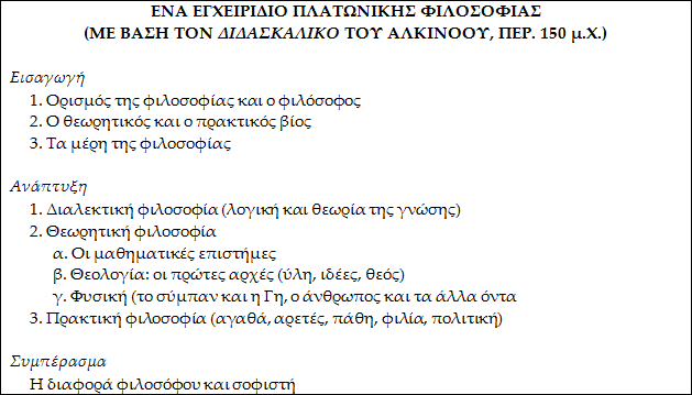 Οι διδακτικές ανάγκες και η αναγνώριση της αξίας του παρελθόντος (ένα είδος κλασικισμού) δημιούργησαν την ανάγκη να υπάρχει μια πρόχειρη (εύκολα προσβάσιμη) καταγραφή της φιλοσοφικής παράδοσης. Πολύτιμα βοηθήματα για τον σκοπό αυτό ήταν τα εγχειρίδια και οι συνόψεις των φιλοσοφικών θεωριών.