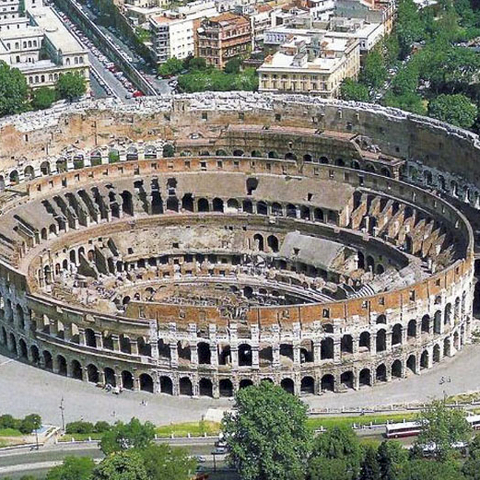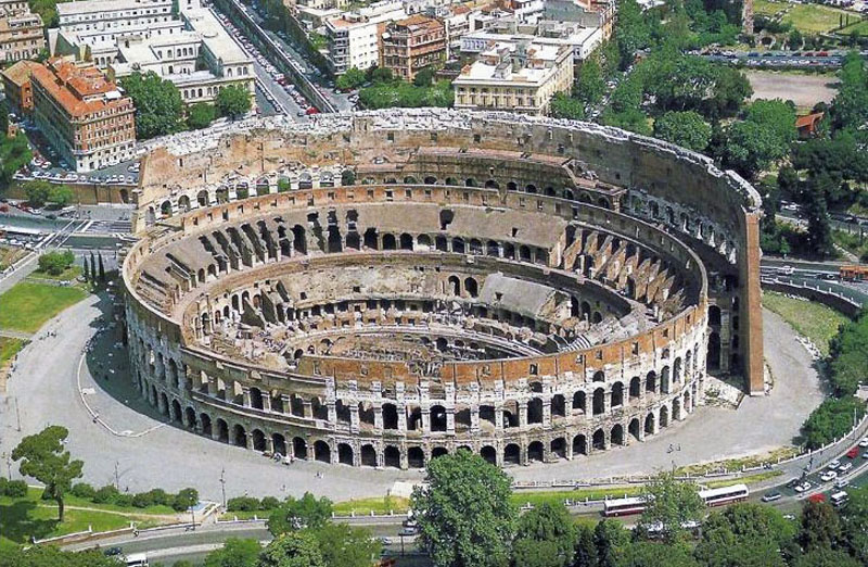 • Το Φλαβιανό αμφιθέατρο ή αλλιώς Κολοσσαίο, όπως θα το έβλεπε ο Ίκαρος. Εγκαινιάστηκε το 80 μ.Χ. από τον αυτοκράτορα Τίτο.