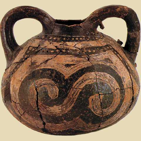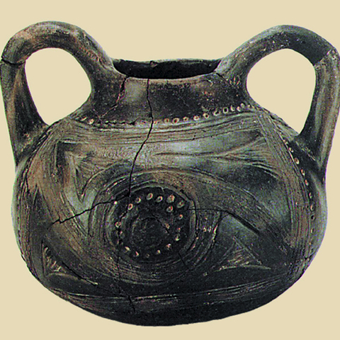 • 9.13. Νεκροταφείο Τορώνης Ν. Χαλκιδικής: αττικός, τροχήλατος αμφορίσκος-τεφροδόχο αγγείο, με επίχρισμα και γραπτή διακόσμηση (ΜΠ 81.364).