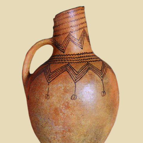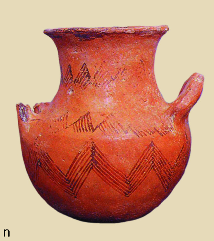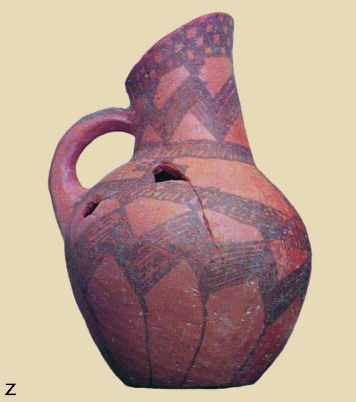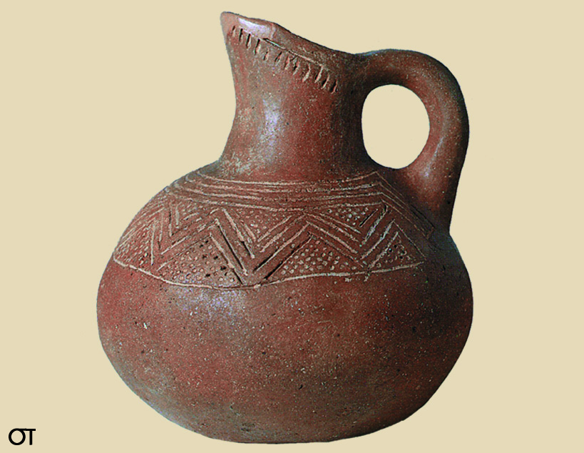 • 8.6. Περιβολάκι Λαγκαδά Ν. Θεσσαλονίκης: χειροποίητη λοξόμητη πρόχους με εγχάρακτη διακόσμηση και λευκή ασβεστώδη ύλη (ΜΘ 4607).