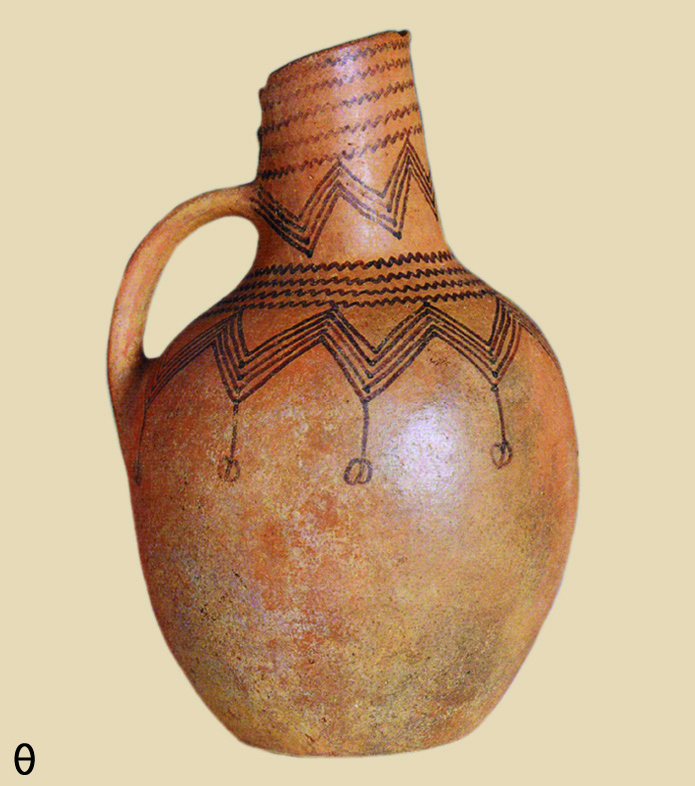 • 9.7. Καπουτσίνα Αιανής Ν. Κοζάνης: χειροποίητη πρόχους με αμαυρόχρωμη διακόσμηση τύπου Μαρμάριανης Θεσσαλίας (Α.Σ. Αιανής 7472).
