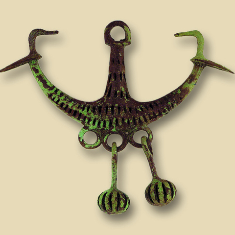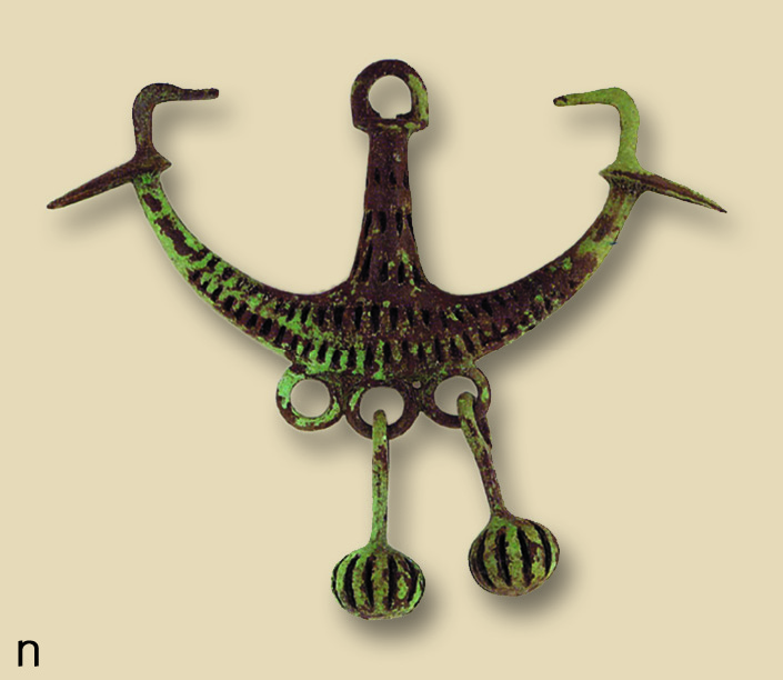 • 10.8 Αξιούπολη Ν. Κιλκίς: αγκυρόσχημο περίαπτο με πτηνόμορφες απολήξεις (ΜΚ 496).