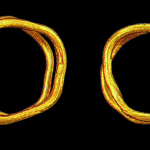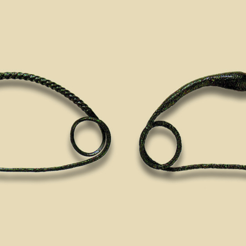 • 10.26. Νεκροταφείο τύμβων Δίου Ν. Πιερίας: δύο σφηκωτήρες μαλλιών (ΜΔ 2372). (Από Αρχαία Μακεδονία, Κατάλογος έκθεσης Αυστραλίας, ΥΠΠΟ-ICOM, Αθήνα 1988 και από Ελληνικός Πολιτισμός. Μακεδονία. Το βασίλειο του Μ. Αλεξάνδρου, Κατάλογος έκθεσης Μοντρεάλ, ΥΠΠΟ-ICOM, Αθήνα 1993).