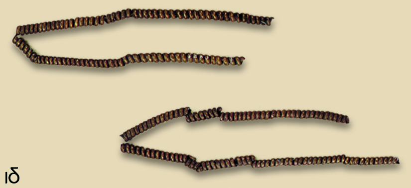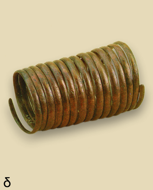 • 10.14. Νεκροταφείο τύμβων Βεργίνας Ν. Ημαθίας: σπειροειδή ελάσματα (σύριγγες) για να κοσμούν το κεφάλι (ΑΗ.ΙΙ.δ-δ').